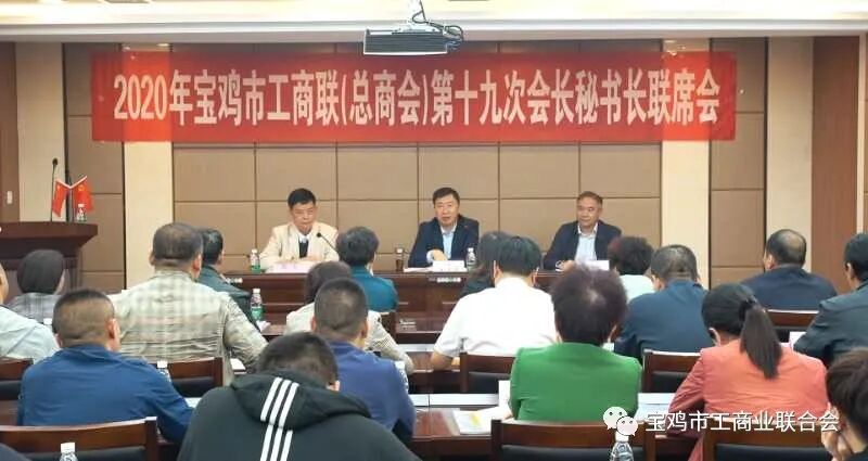 9月25日,宝鸡市工商联(总商会)第十九次商会会长、秘书长联席会在宝鸡市江苏商会召开。宝鸡市工商联主席、市总商会会长王喜平,宝鸡市工商联秘书长、总商会秘书长王骊出席会议。